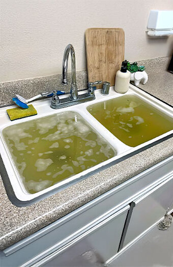 Comprehensive treatment of foul-smelling sink drains, addressing bacteria growth, trapped debris and compromised water seals.